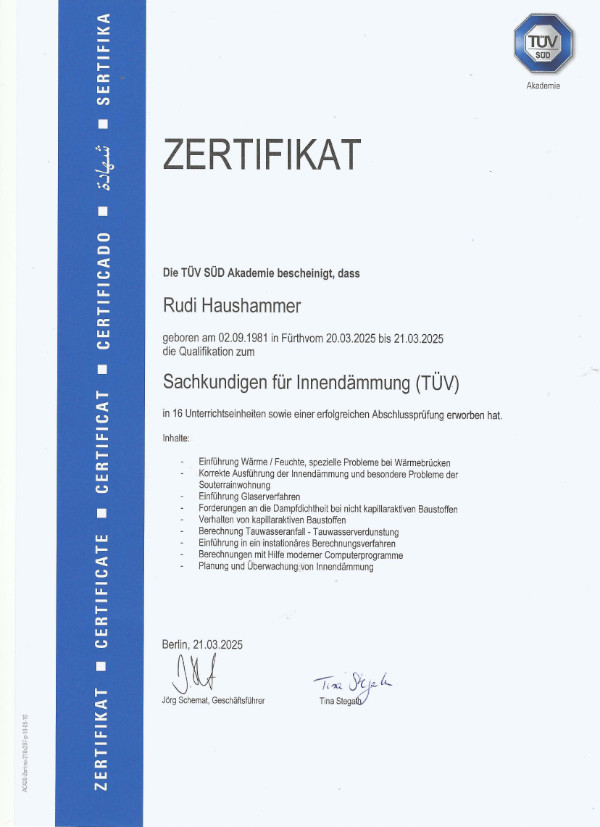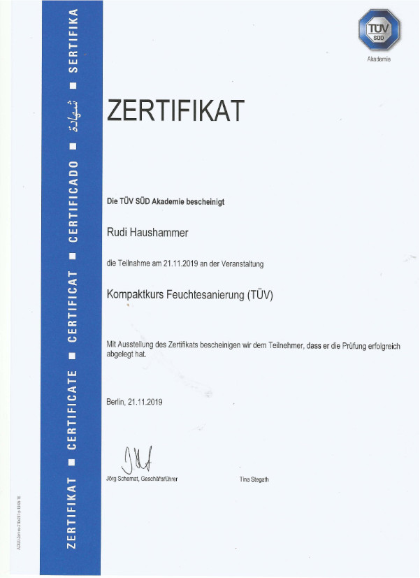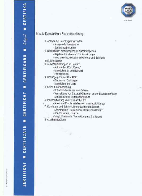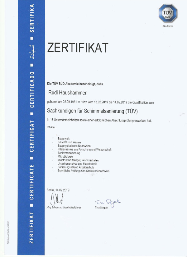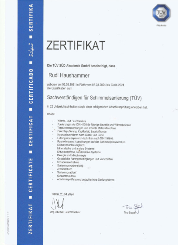 Sachverständiger für Schimmelsanierung (TÜV) |